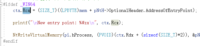 接着调用SetThreadContext设置eip\rip指向payload的地址,最后ResumeThread恢复主线程执行payload: