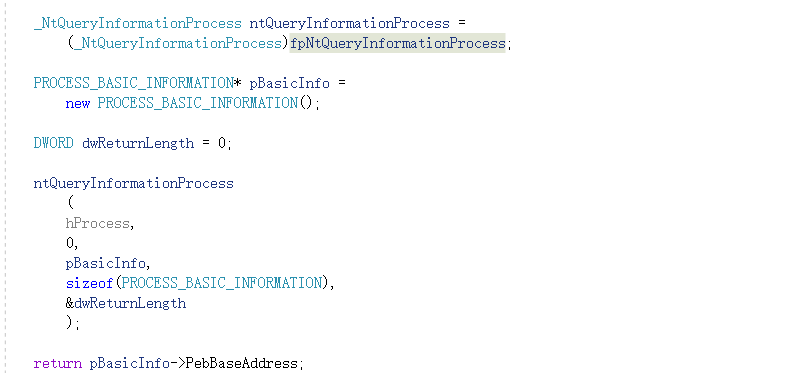 第二种是通过NtQueryInformationProcess找到所创建程序的PEB: