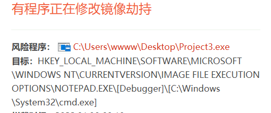 Windows defender对上述几个修改注册表的动作是不会有提示的,但是360安全大脑会有类似下面提示,其实是可以绕过360安全大脑进行添加的: