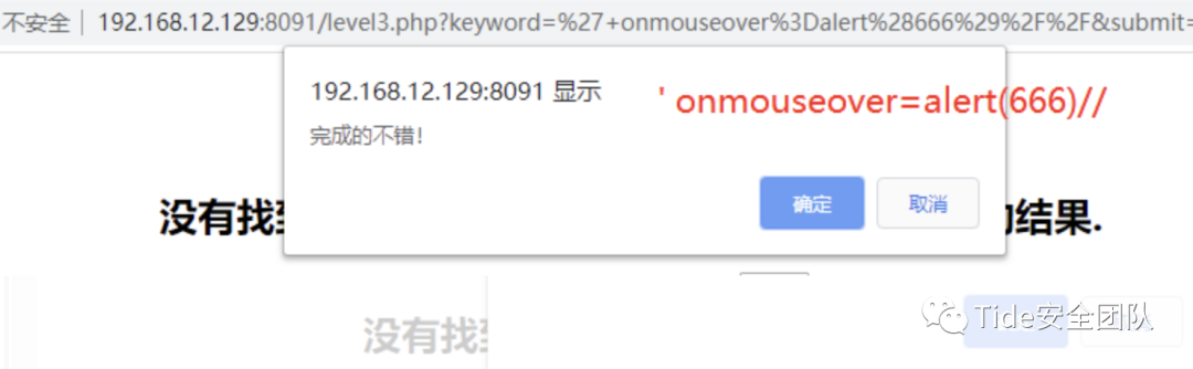 所以,此处尝试js语句,' onmouseover=alert(666)//、' onfocus=javascript:alert(1) '进行测试,但是代码中带有的剩余字符无法闭合,所以使用//进行注释,最终实现XSS弹窗。