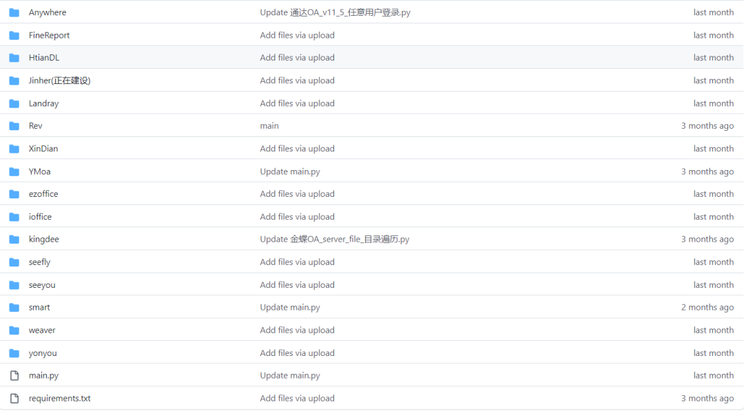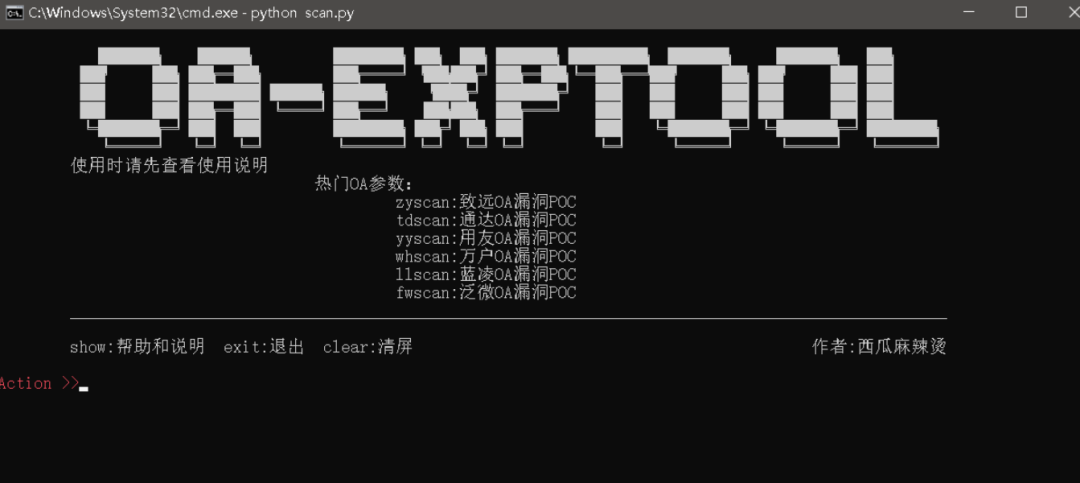 项目地址https://github.com/LittleBear4/OA-EXPTOOL作者:LittleBear4主界面安装教程python scan.py (python3 请注意变量 这是py