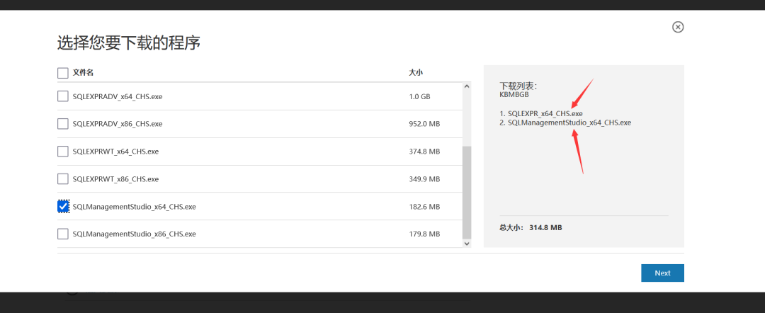 这里选在两个,第一个sqlexpr是安装程序,第二个managementstudio是管理程序,注意看清是64位系统还是32位系统哦。