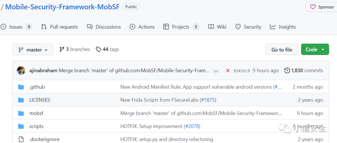 https://github.com/secure-software-engineering/FlowDroid2、MobSF 是一个自动化的、一体化的移动应用程序(Android/iOS/Windows)恶意软件分析和安全评估框架,能够执行静态和动态分析。目前市场上很多合规扫描检测都是基于它去做定制开发的。