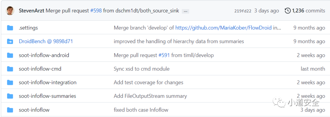 https://github.com/bytedance/appshark4、PATDroid是用于分析Android应用程序和系统本身的工具和数据结构的集合,它通过解析smali语句,分析程序控制流等,也具备APP污点分析的能力,不过它已经没更新了,可以学习下它的思路。