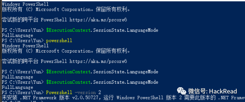 为了防止我们被edr发现,我们需要针对Powershell进行"降低版本"的操作,如果你有能力降级到 Powershell 2.0,这可以让你绕过该ConstrainedLanguage模式。虽然效果不错,但是如果edr对版本进行标记,依然会导致异常。