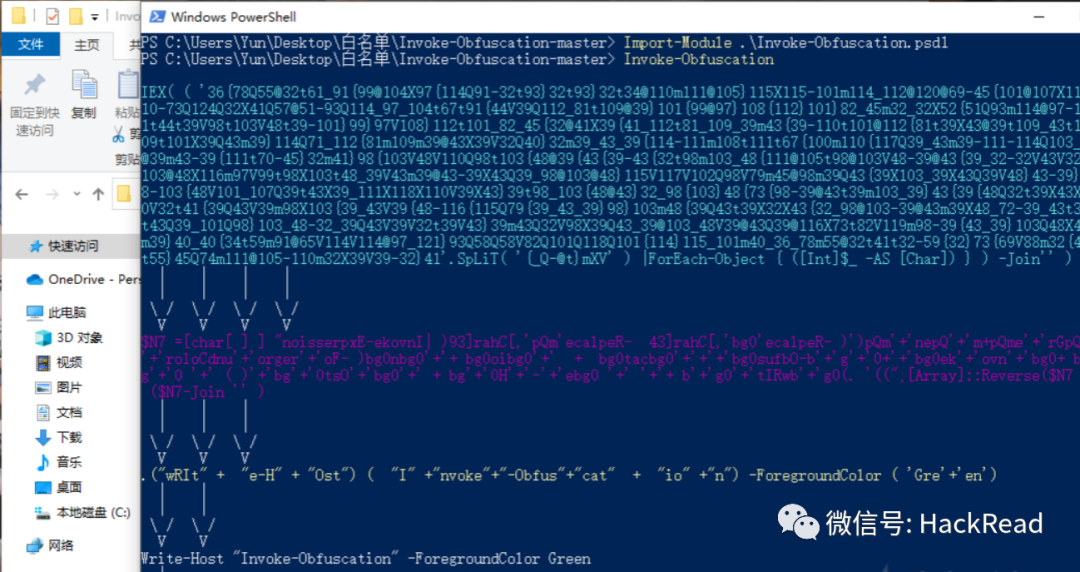 Invoke-Obfuscation是一个兼容PowerShellv2.0+的PowerShell命令和脚本混淆器(github地址:https://github.com/danielbohannon/Invoke-Obfuscation),我们可以使用Invoke-Obfuscation来混淆/加密恶意的PowerShell脚本,使得PowerShell脚本逃避杀软的检测,原理是代码是在解释器中执行的,并很难检测代码本质上是否存在恶意代码。