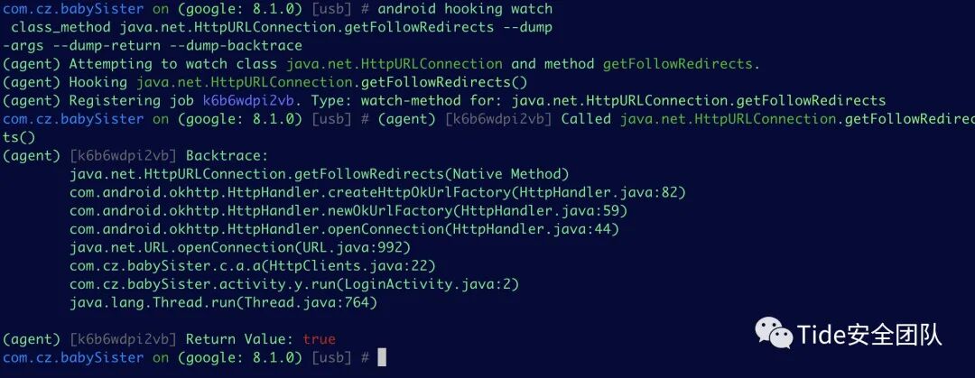 # android hooking watch class_method java.net.HttpURLConnection.getFollowRedirects --dump-args --dump-return --dump-backtrace