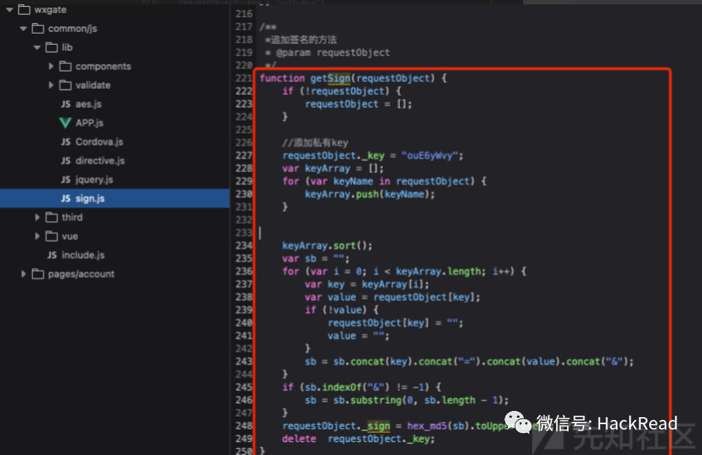 大致的加签数据生成流程已经理清楚,接下来就需要编写burpy脚本搞定"_sign"加签参数,首先把getSign()函数的加密算法抠出来复制到sign.js文件中