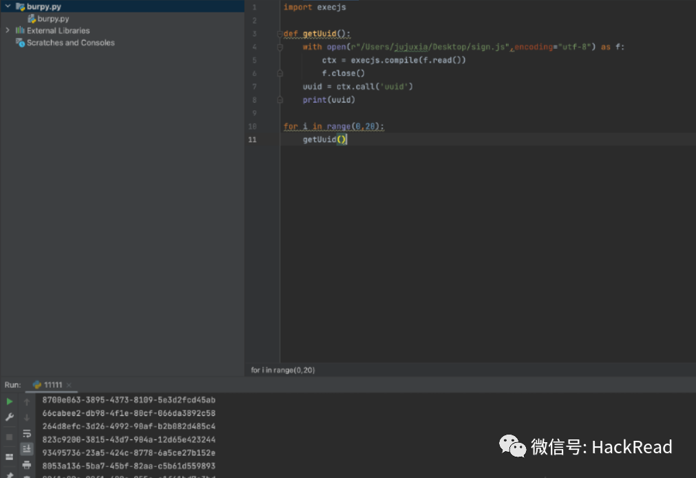 使用python的execjs模块调用sign.js的uuid函数,编写demo测试没问题,加签字段"_msgid"搞定