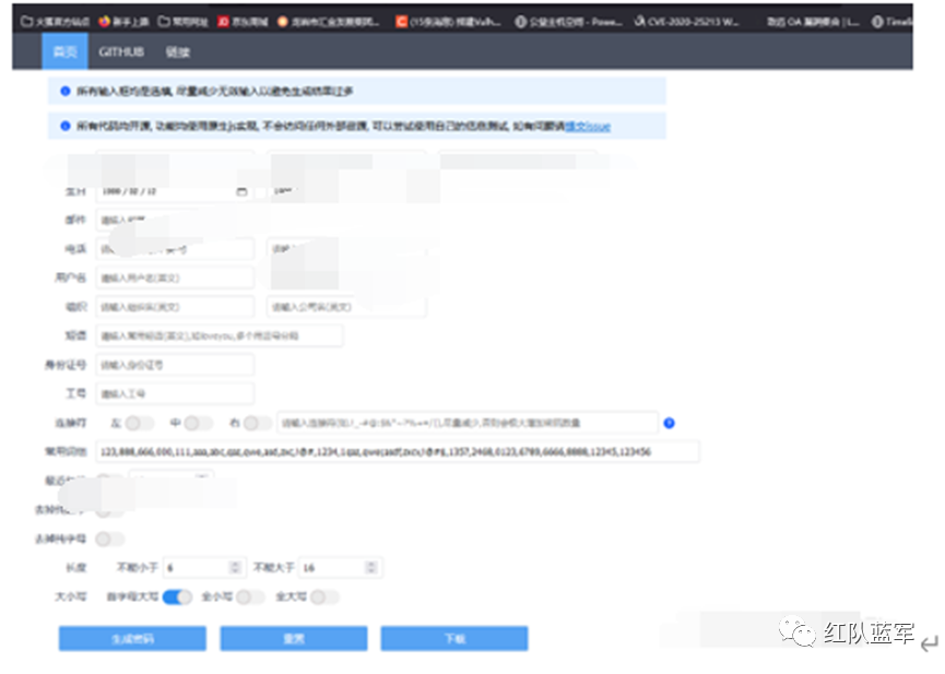 然后再去一个个生成密码字典爆破试试,在线生成爆破字典的链接为: https://www.shentoushi.top/tools/distplus/index.html