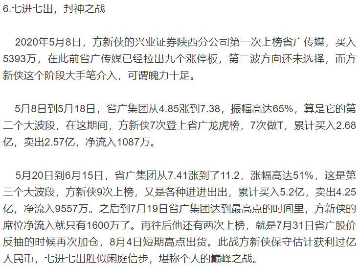 顶级游资方新侠个人经历和操作手法