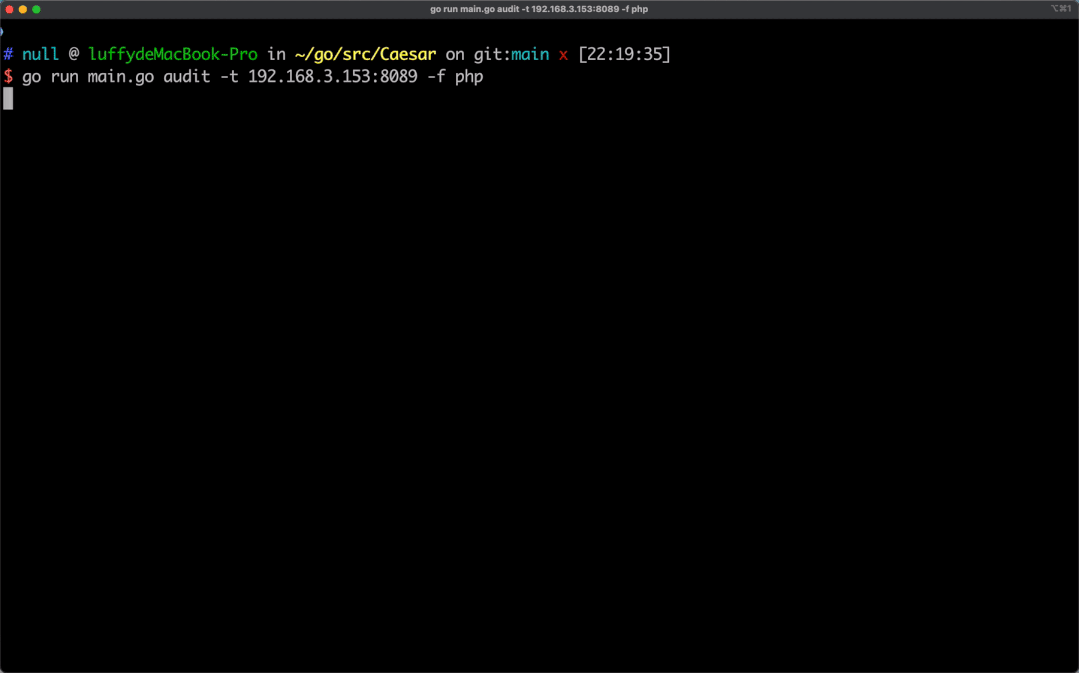 支持主流平台: 得益于golang的跨平台优势。一次编译,到处运行。强大的并发: golang的并发独树一帜。12线程下能实现每秒千级请求。为了安全性,默认只设置了3线程。路径记忆功能: Caesar可以记忆路径的击中次数,下次运行的时候,击中次数多的路径优先级会提高。动态404判断: 针对网站不存在页面返回的404,200,3xx状态码可以自动识别判断。动态文件后缀扫描功能: 比如发现index.php之后,程序会在二段扫描中扫描index.php.txt, index.php.swp, index.php.bak。动态目录扫描功能: 比如发现/admin之后,程序会在二段扫描中扫描admin.zip, admin.rar, admin.tar, admin.tar.gz。可自定义http请求头: 修改config.yml的Headers可以添加请求头内容。可自定义User-Agent: 修改config.yml的UserAgent可以实现随机UA。可自定义代理: 修改config.yml的Proxy可以实现代理访问。可自定义cookie: 修改config.yml的Cookie在访问网站的时候会带着cookie。超大字典: 程序自带common,jsp,asp,php,spring,weblogic字典,合计超10万条路径,当然也可以自己定制。错误次数太多自动退出功能: 访问目标超时次数到达一定数量的时候会自动终止任务。支持-r读取http请求: 类似sqlmap的-r功能。支持批量扫描: 可以从文本中获取多目标。