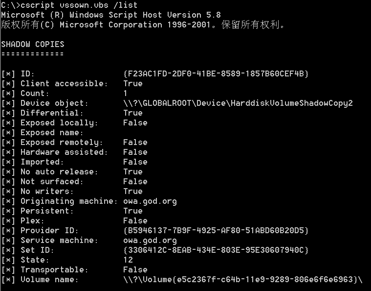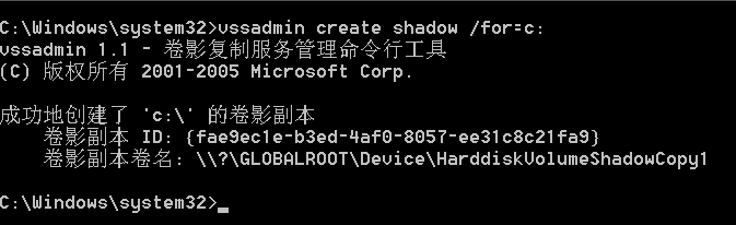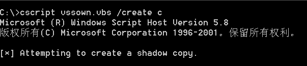 cscript vssown.vbs /start创建一个C盘的卷影副本: