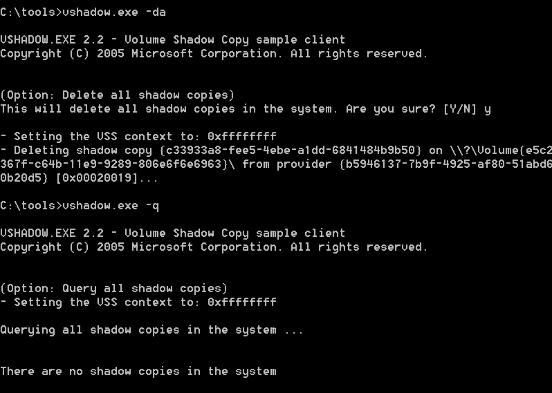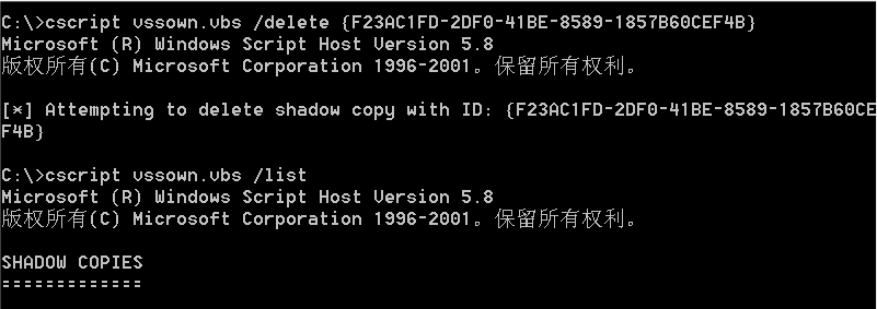 vssadmin delete shadows /for=c: /quietvssown.vbs
