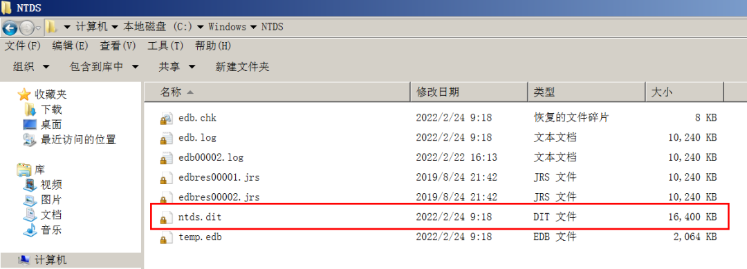 Ntds.dit(也被称为Active Directory database),默认路径为:C:\Windows\NTDS,且只能通过域控制器进程和协议访问。