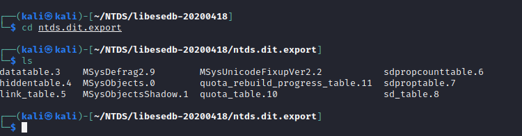 esedbexport -m tables ntds.dit提取完了后会出现一个文件夹,里面存放了很多个表