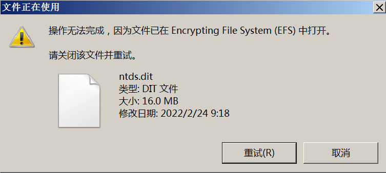 直接复制是无法复制出来的,会弹出提示框,提示文件已在Encrypting File System(EFS)中打开