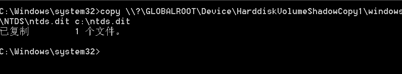 copy \\?\GLOBALROOT\Device\HarddiskVolumeShadowCopy1\windows\NTDS\ntds.dit c:\ntds.dit删除卷影副本: