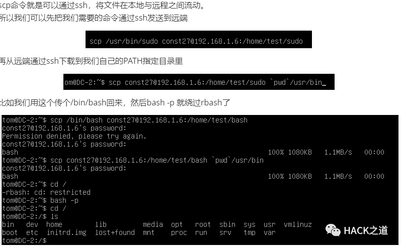 我在http://www.const27.com/2020/07/02/vulnhub-dc-2/就是用scp绕的![]()