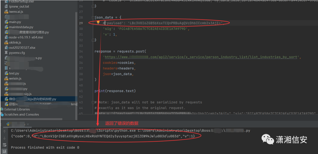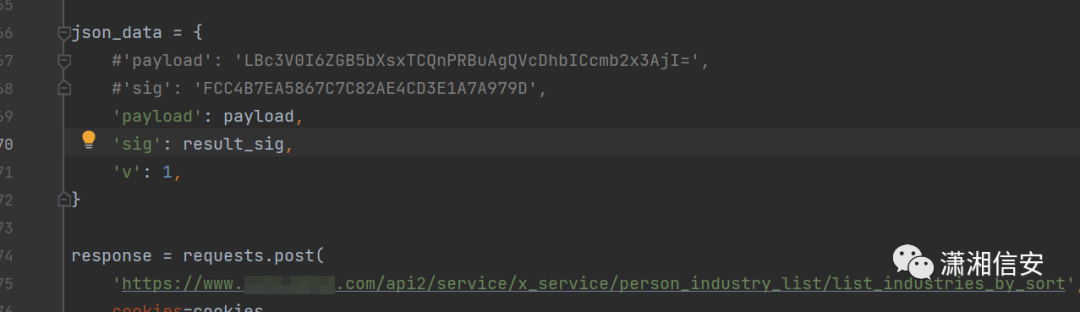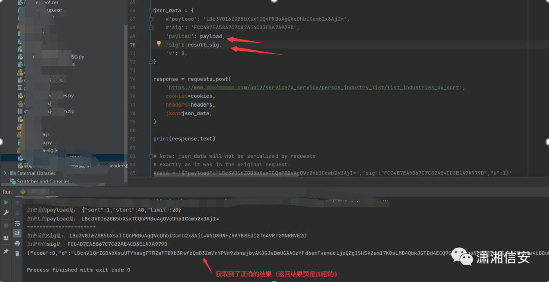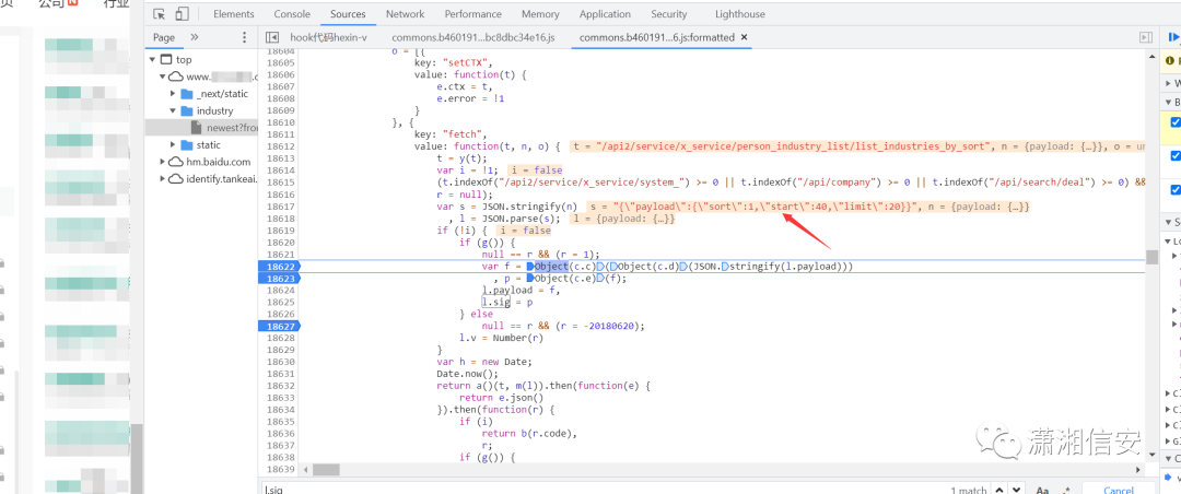 我们分析请求参数,发现是两个加密的请求参数,分别是payload和sig。