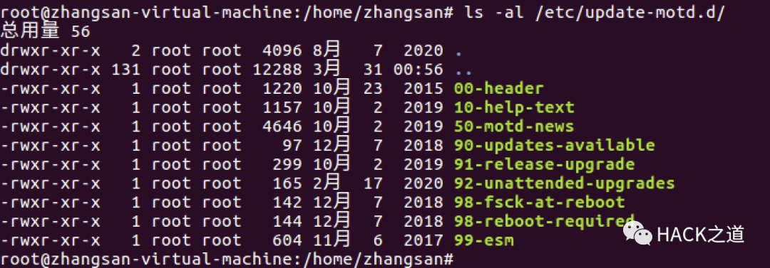 这个目录下的所有文件在任意用户登录后都会执行一遍,因此可以通过这些脚本来留下我们的后门来权限维持