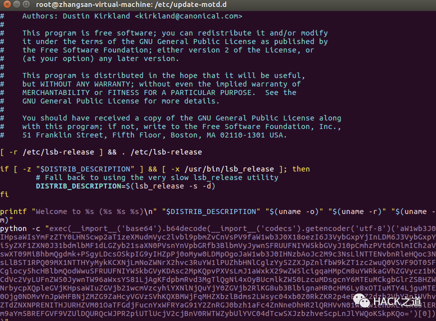 每次任意用户登录时都会触发motd服务的功能,这个功能的脚本几乎都是使用root 权限来启动的