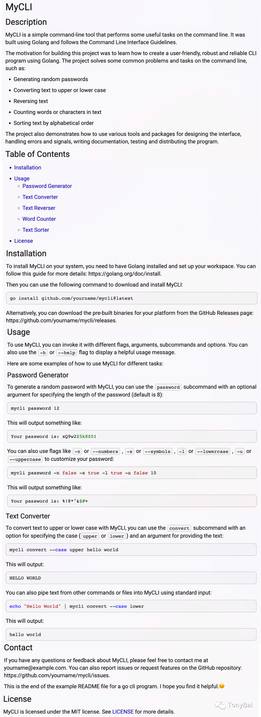 容易归容易,但要用Go编写出优秀的CLI程序,我们还需要遵循一些原则,获得一些关于Go CLI程序开发的最佳实践和惯例。这些原则和惯例涉及交互界面设计、错误处理、文档、测试和发布等主题。此外,借助于一些流行的Go CLI程序开发库和框架,比如:cobra[5]、Kingpin[6]和Goreleaser[7]等,我们可以又好又快地完成CLI程序的开发。在本文结束时,你将学会如何创建一个易于使用、可靠和可维护的Go CLI程序,你还将获得一些关于CLI开发的最佳实践和惯例的见解。