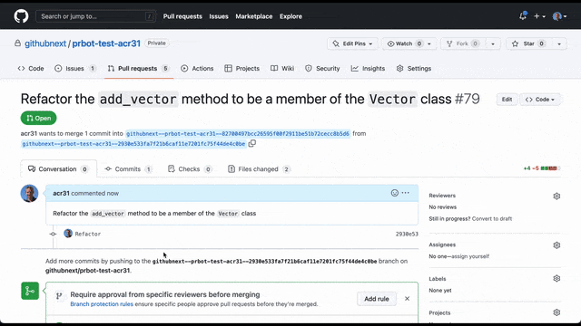 未来,Copilot还会新增Gentest和Ghost Text的两大功能。Gentest:当Copilot发现提交的Pull Request缺少足够的测试时,会自动提醒开发者,并根据项目需求建议可编辑、接受或拒绝的潜在测试。对于项目所有者来说,这个功能还可以帮助他们去制定关于测试的策略,同时支持开发者遵循这些策略。Ghost Text:当开发者创建Pull Request时,Copilot会动态地获取代码更改的相关信息,并自动给出建议。解决AI问题:可以自动描述如何解决问题,甚至自动建议需要进行的更改。如下,在提交了转移到PyTorch的问题后,新功能可以提供生成代码建议,并发起新的Pull Request。用AI审查PR:由于大量的开发人员将时间花费在代码审查,以及为代码审查准备PR上,这一功能就可以减少审查花费的周期。Copilot for Docs