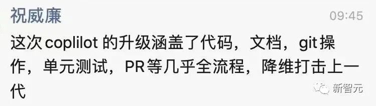 具体来说,Copilot X提供支持的体验有:Copilot Chat;Copilot for Pull Request;Copilot for Docs;Copilot for CLI。这些新功能都是由OpenAI的GPT-4驱动的。值得注意的是,由于速度延迟的原因,代码自动补全工具仍基于GitHub的Codex模型上,该模型是在GPT-3上训练的。现在,微软已经将GPT-4集成到搜索、办公、写代码等各种真正意义上的生产力工具上,属实是拥有了开启第四次科技革命的力量。资深大数据架构师祝威廉称,Everything powered by AI已经不再遥远:如果说,OpenAI GPT-4只是个模型完成了从0到1,微软则推动了其商业化直接前进一大步。这次,Copilot X的发布,直接降维打击上一代Copilot。