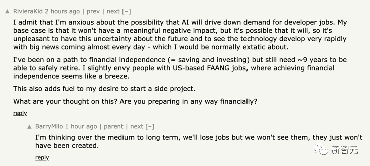 网友纷纷表示,编程已经被ChatGPT永远地改变了。「作为一个开发者,这实在是令人沮丧。编程中,我们快乐的源泉是与逻辑打交道和解决技术问题,而不是专注于生产力或满足需求。」「我已经做了30年的编程,但我仍然很喜欢它。我不知道没有人类代码的世界会是什么样子。不过我确实很喜欢有CoPilot来处理那些烦人的东西,还有ChatGPT来帮助我解决bug。」「AI出现后,可能就不再需要这么多码农了。对此我感到非常焦虑,即便已经在各种存钱和投资了,但还需要差不多9年时间才能『躺平』。我略微羡慕那些在FANG工作的人,他们似乎可以轻而易举地实现财务自由。」https://github.blog/2023-03-22-github-copilot-x-the-ai-powered-developer-experience/---END---