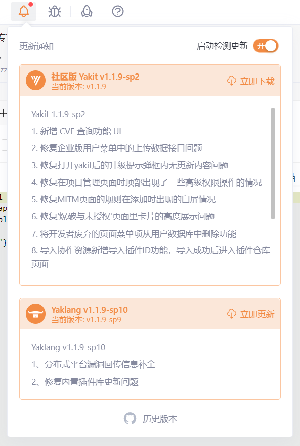 用户可通过更新日志自行判断是否需要更新Yakit与引擎。