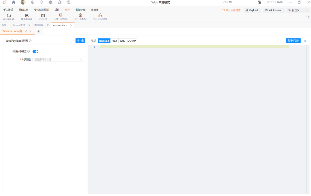 到最新版1.1.9-sp2反连的功能已经相当丰富了,包括端口监听、反连服务器、DNSLog、ICMP-Sizelog、TCP-PortLog、Yso-Java Hack,满足各种丰富的反连使用场景,实现团队All-in-One的目标。