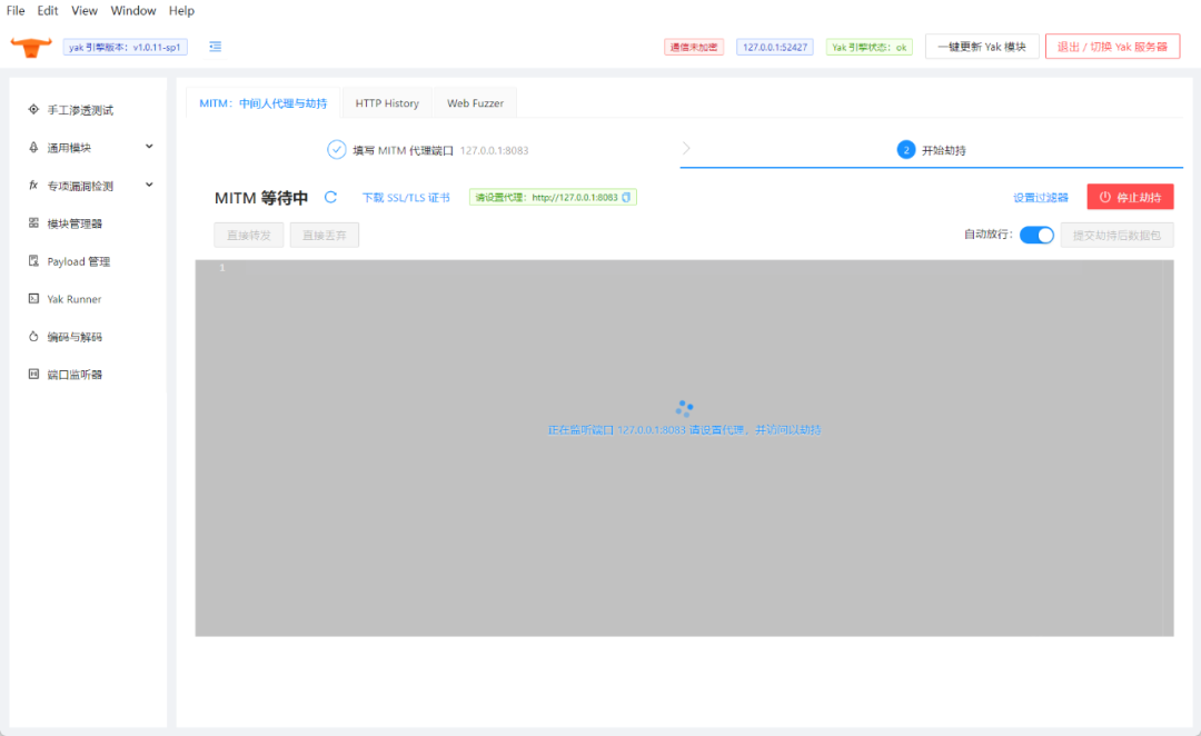 首先新版对比旧版的直观变化就是页面的整体布局调整,增加了内容规则匹配、过滤器、插件联动、免配置启动等好用的小工具,辅助劫持工作更加流畅进行,提升工作效率。