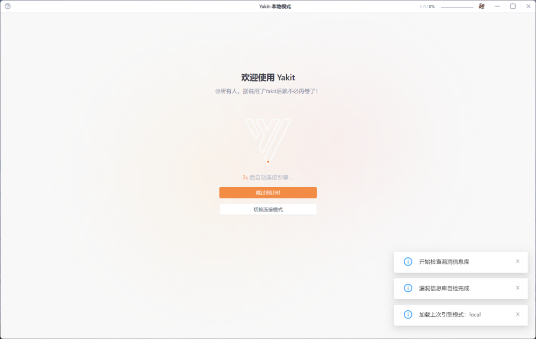 改版新UI后,优化了整体页面和启动连接逻辑,无需每次进入页面手动连接引擎,安装后第一次打开选择连接方式后,每次打开都会按退出时的连接模式进行自动连接。