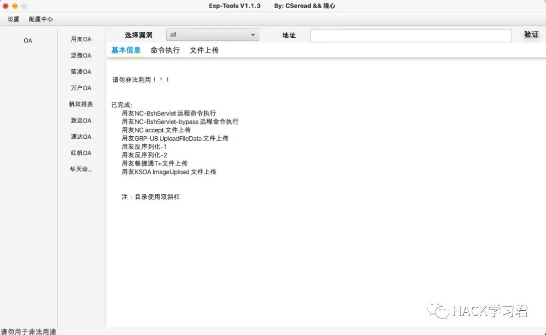 本工具仅提供安全测试人员使用于授权测试, 禁止使用于未授权测试, 违者责任自负。