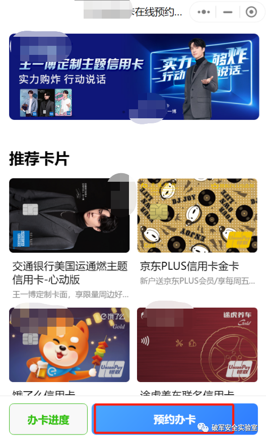 1、测试资产信息中的,微信小程序:XXX银行信用卡在线预约申请,查看存在预约办卡功能