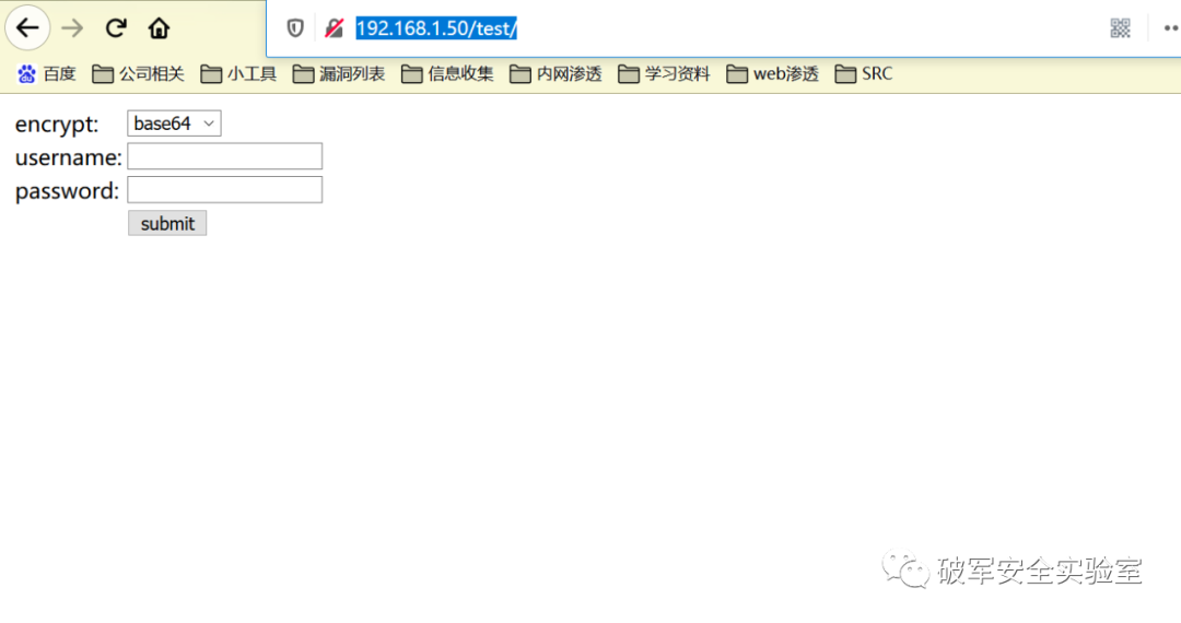 1、自己搭建一个前端加密的站点进行测试:http://192.168.1.50/test/