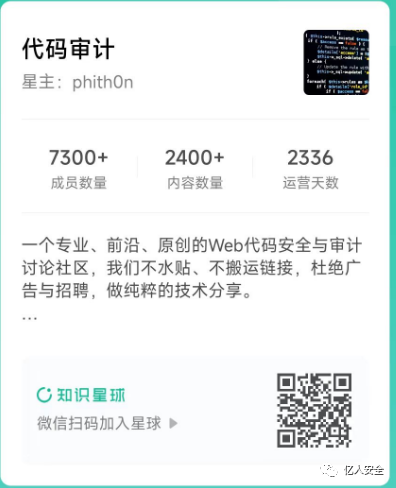 龚潇,网名 phith0n,长期躬耕于信息安全领域的技术博主,发布安全相关文章数百篇,阅读量超百万。国内著名安全社区【代码审计知识星球】创始人,拥有付费用户超7000人,也是现在为数不多的永久星球: