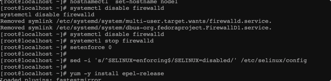 systemctl stop firewalldsystemctl disable firewalldsetenforce 0sed -i 's/^SELINUX=enforcing$/SELINUX=disabled/' /etc/selinux/config