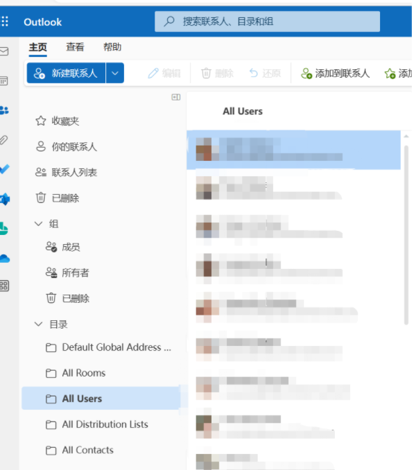 1、加载插件后,进入Outlook 网页版联系人面板,点击All Users
