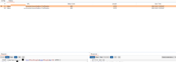 7、我们进入到history面板,插件会自动爬取所有数据包并生成目录树,可以查看每一个请求响应包