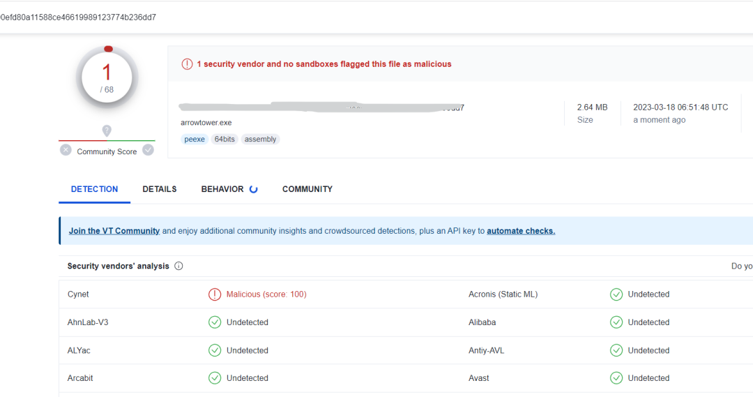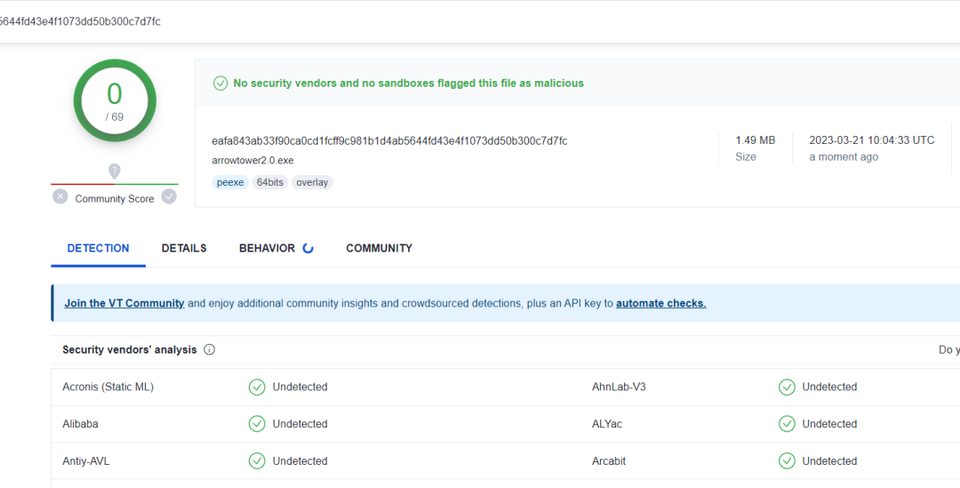 于是我先进行了实验,在exe资源中存放一张大小差不多的正常的图像,上传VT测试,发现报毒并没有降低,于是将该方法pass掉。