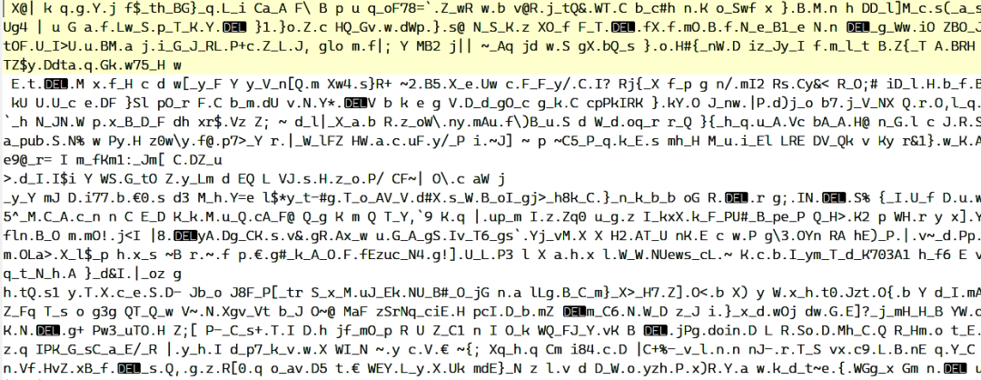 可以看到还是很乱,其中还有del字符存在,应该是我写的代码出了bug,但是没有关系,这在杀软眼中已经是属于熵值很低的了。