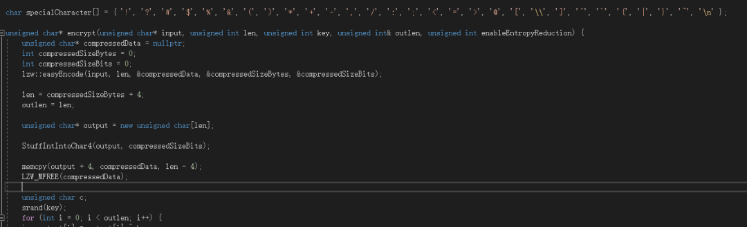 加密后的字符串长度增长0.5还是太多了,经过在github上的一番寻找,最终找到了一个比较合适的加密算法lzw加密算法——具有不同代码长度和 4096 个最大条目字典的Lempel–Ziv–Welch压缩,对大shellcode的压缩在60%左右,接近zlib。