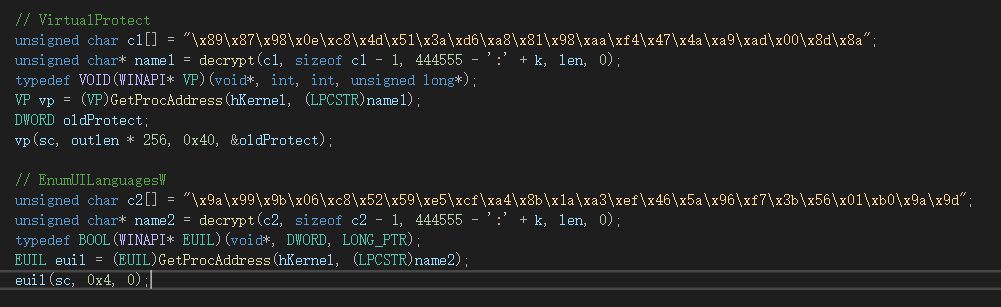 为了增加免杀能力对字符串进行了加密,并用动态生成key。