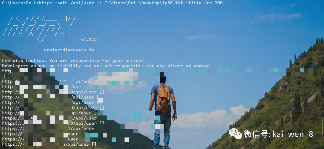 在这个工具中有一个 -path/-paths参数,该参数的作用是进行目录的拼接,在使用 -mc参数匹配状态码为200的,进行快速验活