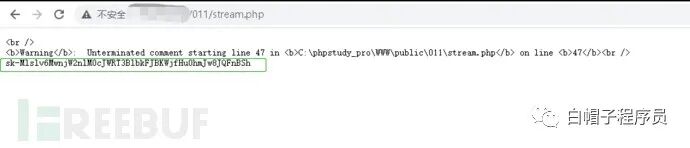 此时我们去访问下存放API密钥的stream.php这个文件,已成功回显sk-开头的密钥了。